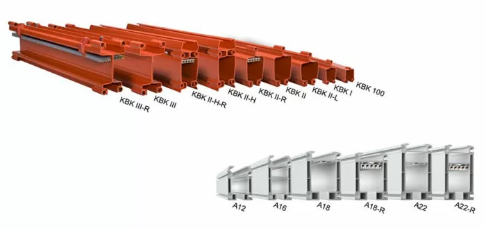 Med mer än 50 år på nacken är idag KBK systemet använt av många och kopierat av alla men fortfarande är KBK det mest kompletta lättlastsystemet du kan ha i taket. Med Demags erkända kvalitet så är vårt skensystem typ KBK det bästa på marknaden.