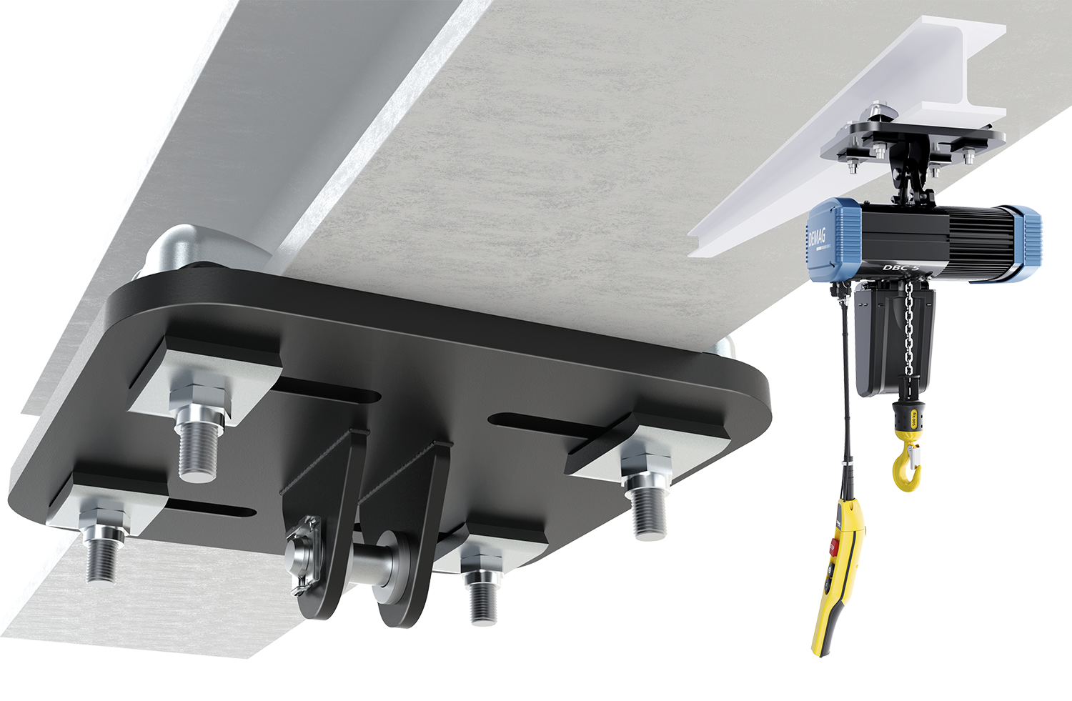 Tvåstegslyfthastigheten är upp till 8 m/min, medan en enstegsvariant kompletterar sortimentet. Storlekarna 5 och 10 kan också utrustas med en driftstidsräknare som tillval. DBC är lätt att installera med ett upphängningsfäste. Fast upphängning finns tillgänglig för stationär användning. För vagnar med flänsbredder mellan 58 och 500 mm kan användare välja mellan de mekaniska varianterna PBU och RBU samt den elektriska vagnen EBU. Denna eldrivna version uppnår förflyttningshastigheter på 20/5 m/min.