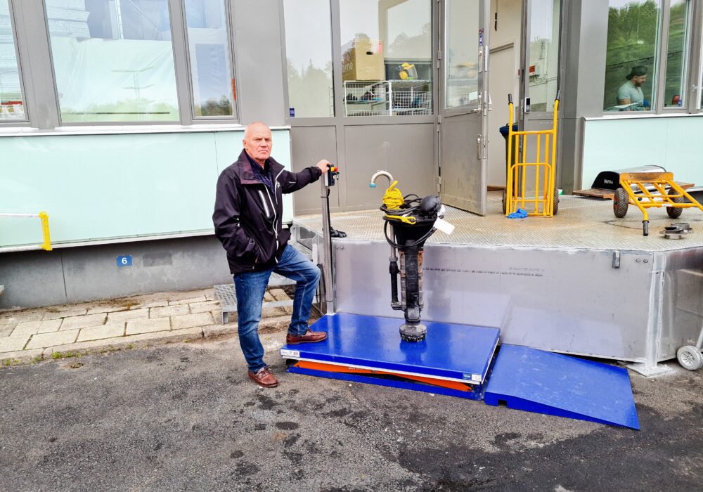Demateks leverans av EdmoLift lyftbord till Nacka vatten och avfall: Den här produkten har fristående hydraulaggregat i plastlåda....