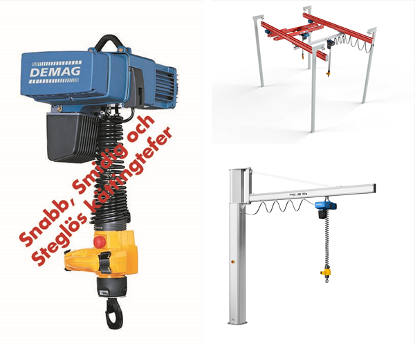 Erbjudandet gäller Demags steglösa kättingtelfer av typen DCMS-Pro H2,8 VS för 125 kg last med en lyfthastighet om 0,15-30 m/min.