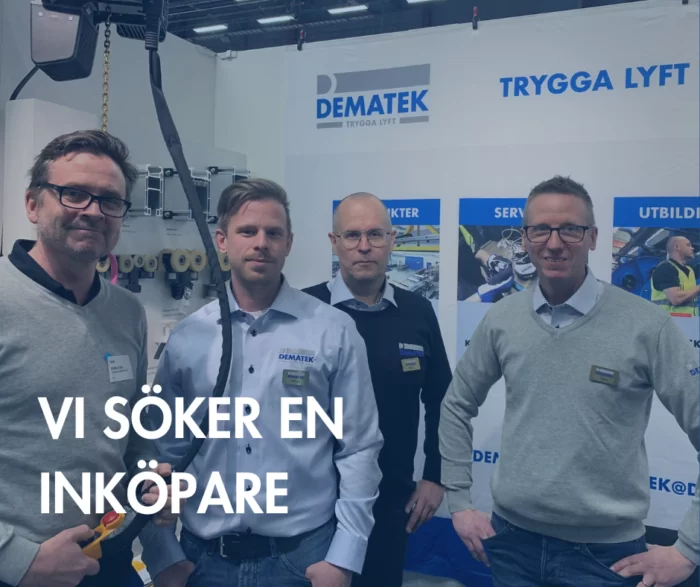 Dematek AB är marknadens mest kompletta leverantör av lyftutrustning, service och säkerhetsutbildningar. Vi finns representerade över hela Sverige och nu söker vi en inköpare med placering på vårt huvudkontor i Segeltorp.